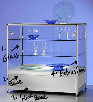 The glass section of a showcase or display case is the 'eye-catching' component. The standard 38" H display case can be changed to give you more or less height. Since USA Showcases Displaycases design and manufacturer, we can accommodate your requirements.